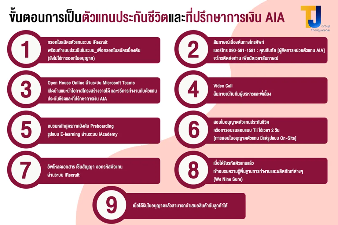 ขั้นตอนการเป็นตัวแทนประกันชีวิต และที่ปรึกษาการเงิน AIA