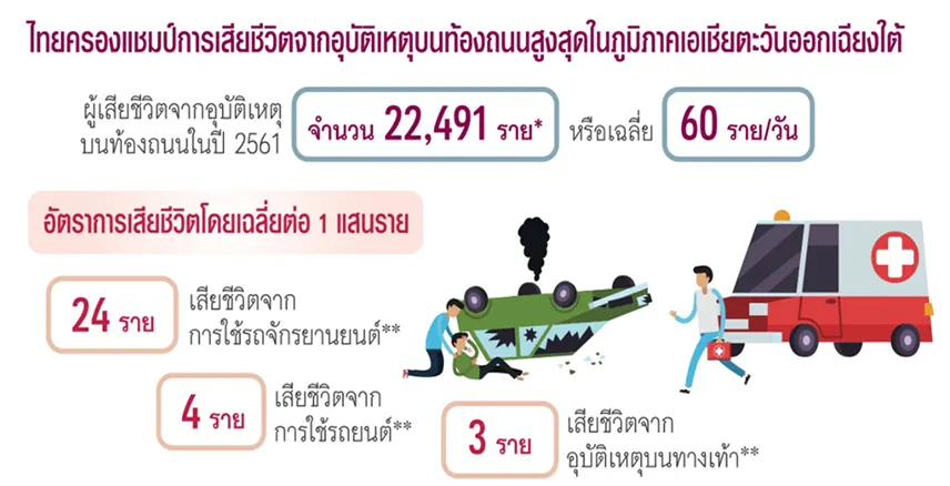 - เสียชีวิตจากการขับขี่หรือโดยสารรถจักรยานยนต์