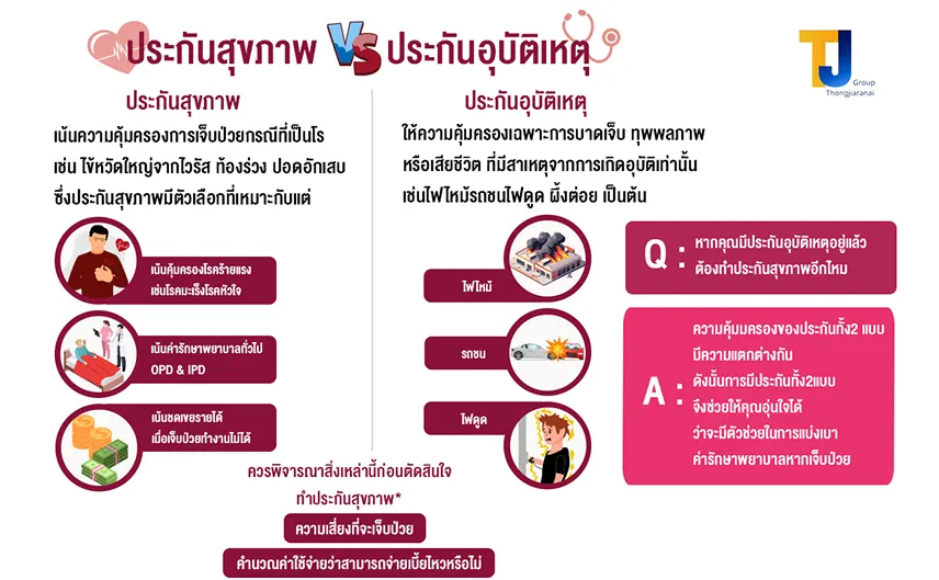 - ประกันอุบัติเหตุต่างจากประกันสุขภาพอย่างไร
