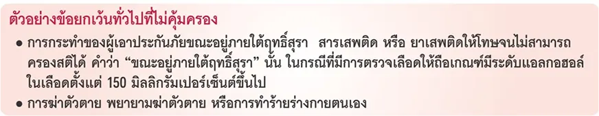 - การกระทำของผู้เอาประกันภัยขณะอยู่ภายใต้ฤทธิ์สุราหรือยาเสพติด