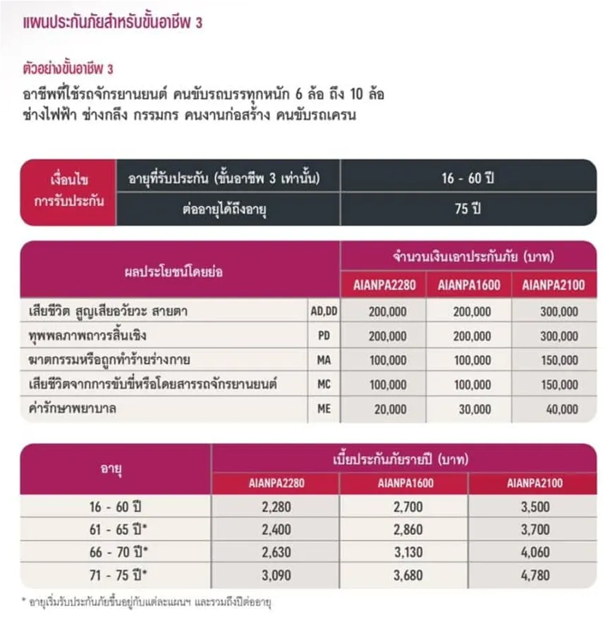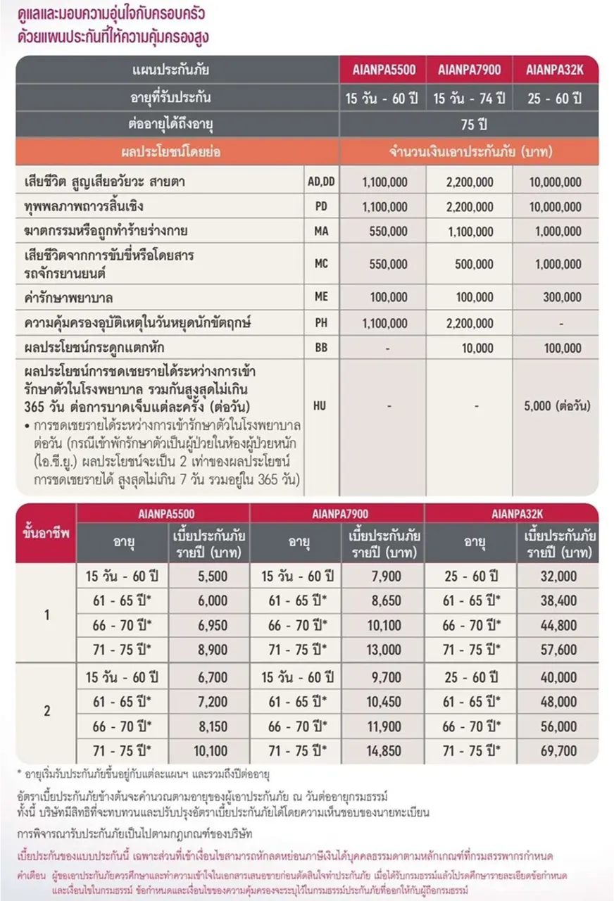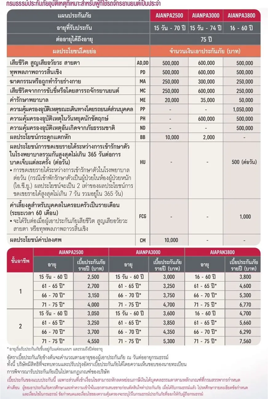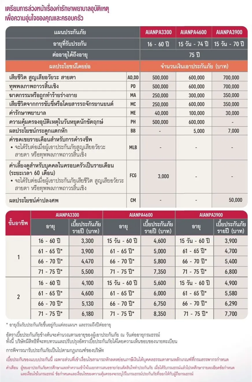 - แผนประกันอุบัติเหตุแผนต่างๆของ AIA